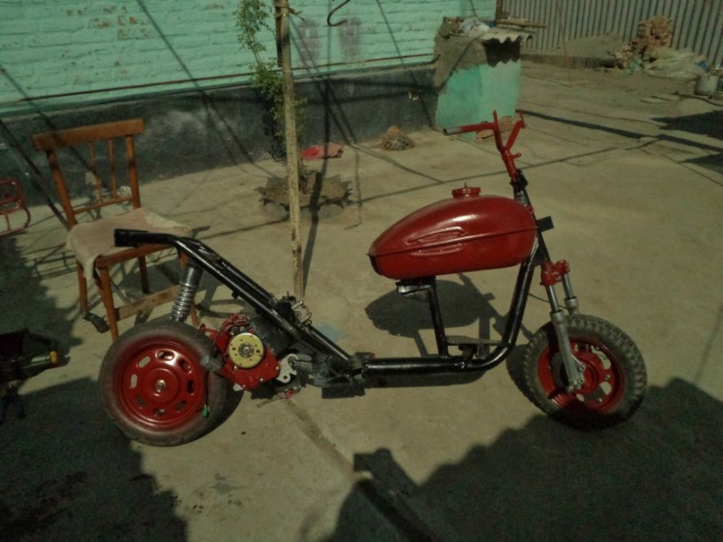 Двигатель обычный под 49.9 но горшок поставил на 100 кубов.Поставил новый карб и начал выделываться. |