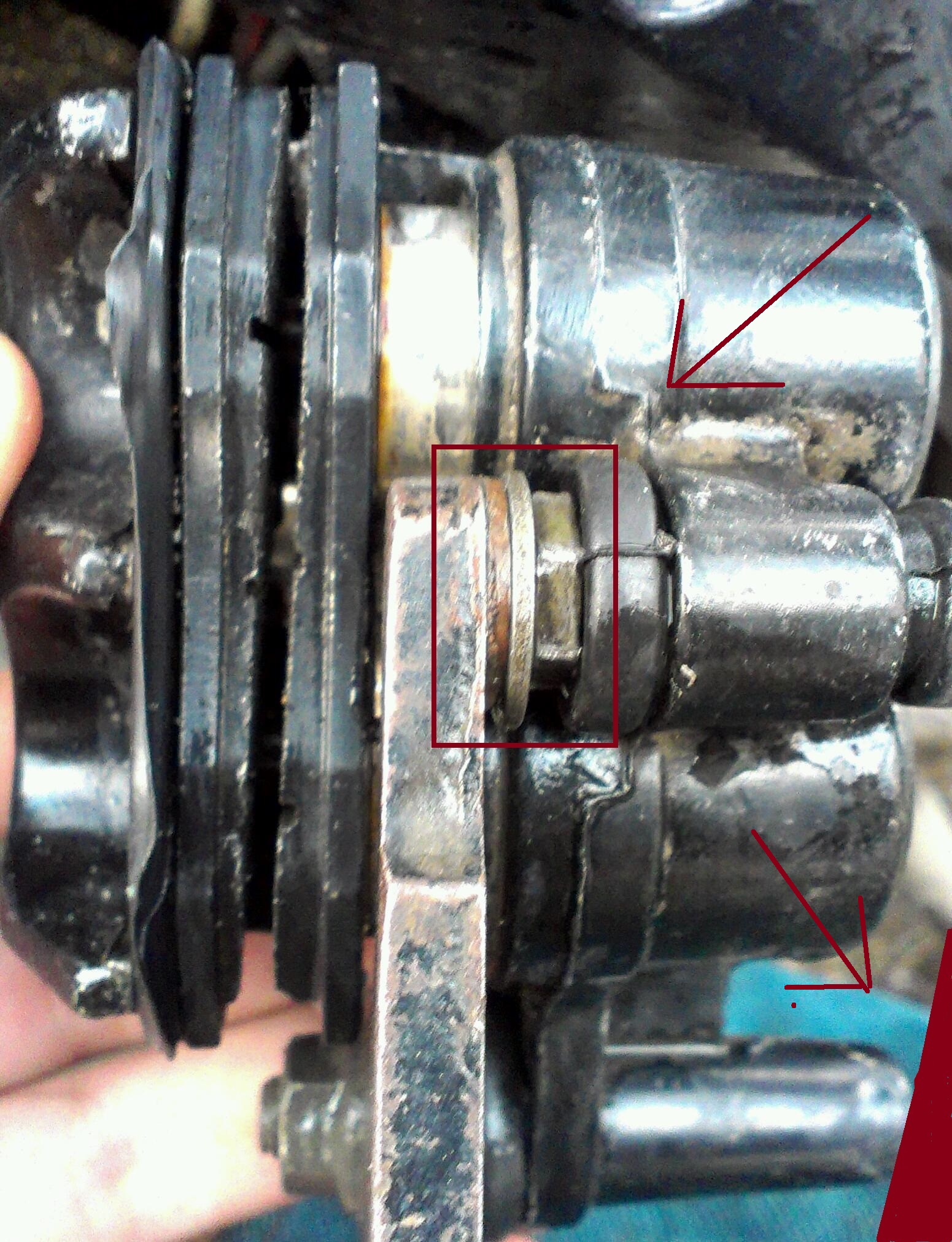 Недавно взял новый такой же суппорт, разобрав очень удивился, были либо кривые пальцы либо на заводе накосячили, короче малая направляющая была грубо спилена сбоку, заменив на целую я столкнулся с тем что они начали клинить, не выдержано межцентровое расстояние. Заменив обе направляющих со старой скобой уже стало лучше.
