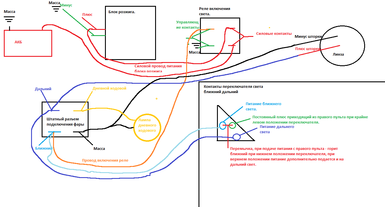 Переделать проводку чтобы работала шторка и усилить ВВ провода ксена, че то их бывает шьет на массу иногда и свет мерцает, а иногда и просто не включается, скорее всего проблема в дешевых лампочках, изоляция на них слишком мягкая по сравнению с более дорогими.