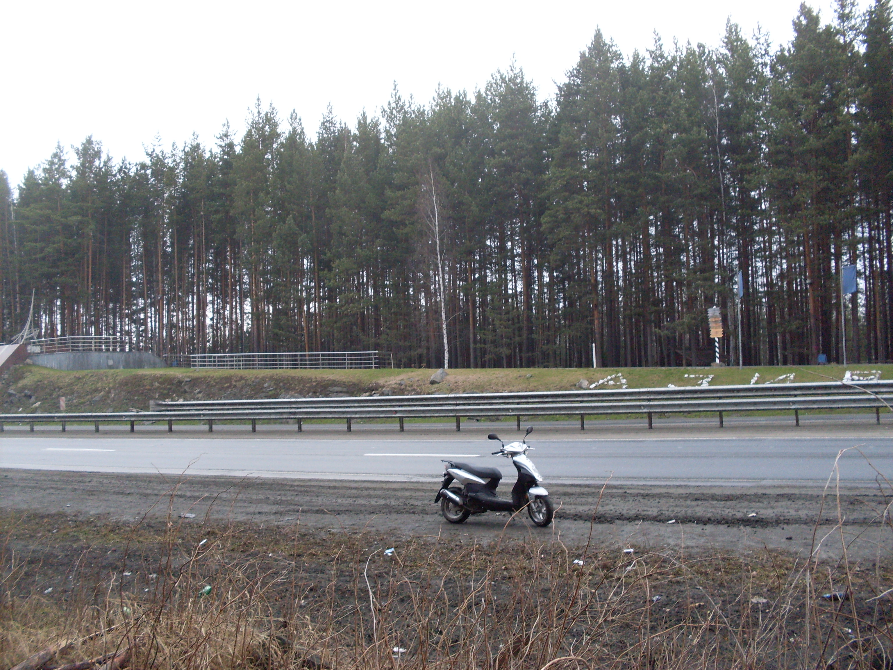 О поездке по маршруту Екатеринбург - Югорск (ХМАО). Не скажу, что идея родилась спонтанно, но солидная доля спонтанности была. Учитывая прошедшую зиму (кто живёт в северной части Сибири – меня поймёт) и наличие 2-х маленьких детей, хотелось выбраться из дома хоть ненадолго. На первомайские праздники меня пригласили друзья в Екатеринбург, которые владеют пейнтбольным клубом, расположенным под городом Ревда. Поездку к ним решил совместить с приобретением скутера. Свой первый скутер выбирал долгими зимними вечерами, поначалу скорее виртуально. Остановился на скутере SYM Orbit 50 по критериям отзывы-качество-цена. Китайское (континентальное) покупать не хотелось – лотерея, японское и европейское – слишком дорогое удовольствие для эксплуатации в течение короткого сибирского лета. Причём хотелось именно 4-х тактник ввиду его значительно лучших показателей по надёжности, экономичности, шумности, удобству эксплуатации. Доводы о том, что 2-х тактник якобы динамичней и быстрее для меня не актуальны, поскольку по характеру я похож на «Капитана Улитку» из «Топ Гир». Купил в екатеринбургской конторе Емото на Самолётной. Причем в день, когда я выезжал в Екатеринбург на поезде, на сайте цена на скутер составляла 39500руб., когда приехал – уже 41500. Принципиально устроил небольшой скандальчик – мне уступили аппарат по старой цене. Там же прикупил шлем и свечу зажигания (на всякий случай). Хотел ещё купить запасной ремень вариатора, но сотрудник конторы, не продавец по натуре, видимо, сказал, что с прошлого года ещё никто по поводу ремня не обращался. Отчалил… Первое впечатление – даже на 40 км/ч дует очень солидно - замёрз. Пришлось в первом попавшемся магазине покупать тёплое исподнее. Доехал до заправки – полный бак 4,8 л. на 101 руб. После поехал из Екатеринбурга в г. Ревду (60 км.) к друзьям стреляться. Сразу заметил, что все, кто едет на скутерах мне бибикают. Потом дошло, что, видимо, местная скутерская традиция. Также оценил преимущества езды на скутере по городу в пробках. Через 30 км. ощутил, что скутер стал как-то отзывчивее что ли. В общем солнце светило, я ехал, было радостно. Что было у друзей – актуально только для узкого круга лиц. На следующий день (т.е. 2 мая) планировал доехать до Екатеринбурга, закинуть скутер в багажный вагон через знакомую контору и на поезде домой. Но поскольку «солнце светило и было весело» вечером родилась идея рвануть домой на скутере, тем более по этому маршруту я ездил на машине много раз, а на работу 4-го числа. И хотя друзья меня отговаривали – я решил. Выехать хотел в 6 утра, но в 5 утра встал – идёт дождь, поспал еще час – дождь прошёл, попил чая и поехал. Удивило, что трасса Пермь – Екатеринбург не смотря на праздничный день с раннего утра была забита. В районе 9 утра проехал Екатеринбург, выглянуло солнце. Впереди почти 800 км. Сначала доехал до Невьянска. Заехал в город – очень хотелось посмотреть на падающую Невьянскую башню. На машине всегда спешишь – пролетаешь мимо. Посмотрел, Всем советую посетить. После доехал до Нижнего (не Нежного) Тагила и второй раз (!!!) заправился. Но после того как проехал город начал ощущаться дискомфорт в районе 5-й точки, который тем дальше, тем только усиливался. Кроме того, просто убивала необходимость ехать в обкаточном режиме (40-45 км/ч) хоть и чувствовалось, что скутер способен не гораздо большее. Н