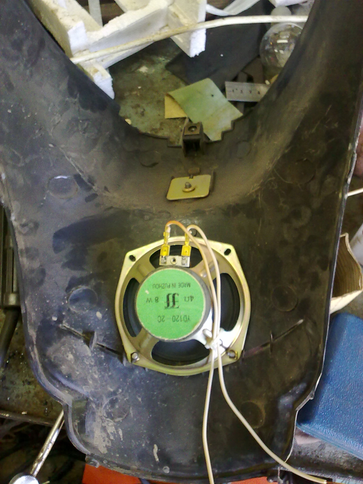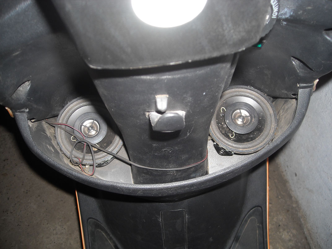 Вот решил поставить музыку на скут с минимальным сверлением в пластике...