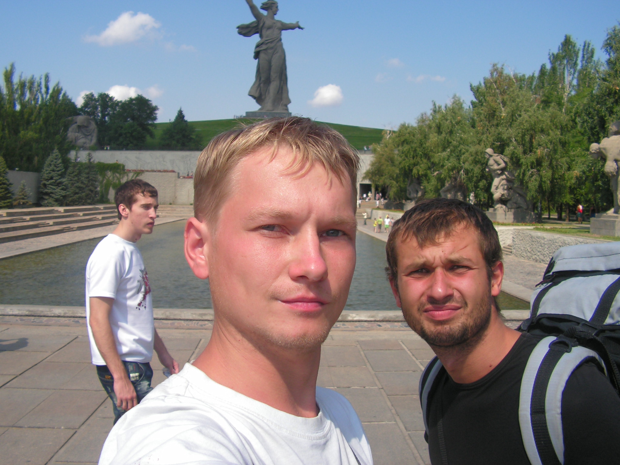 Звонок Фролова. Как выяснилось ночлег вчера ночью они еле еле, но нашли. За единственным придорожным кустом рядом с железной дорогой. Всю ночь слушать проезжающие мимо поезда было очень романтично, а спать под них так вообще замечательно убаюкивали: "ТЫДЫЩ-ТЫДЫЩ, ТЫДЫЩ-ТЫДЫЩ!". Сладко поспав, потянувшись Женя вышел из палатки и сразу угодил ногой в какую-то "полтораметровую яму", которыми изобиловало окрестное поле. Вообщем весело матюкаясь и вытаскивая друг друга из этих ям они сфоткались, собираются и планируют ехать дальше. По пути надо закупиться запасными частями - покрышкой, камерой, насосом, масло для движка. Лучше бы конечно запасной мопед, но денег вобрез. Сегодня к ночи планируют быть в Саратове, где родственники Коваля уже строгают салатики и пекут пироги.