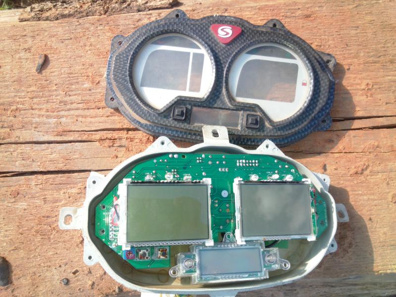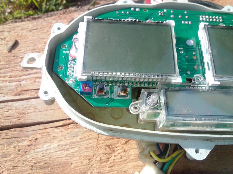 Кстати, на третьем фото видны две кнопки на плате под спидометром, но на панели их нету :-D