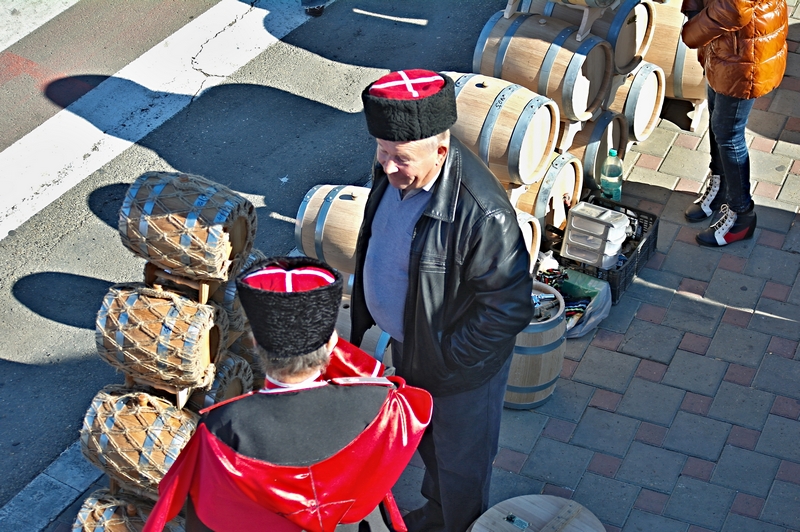 Ну шли то они от парка. Мероприятие было напротив парка. А песня..... а чо песня, я снимал с колокольни, (верхний снимок, колокольня с флагами) а рядом расположился мужик с бочками, (нижний) и в самый ответственный момент он начал набивать обруч (падла), о чем я сообщил ему в изощренной форме. Ну не оставлять же такой звук? Пришлось наложить песню.