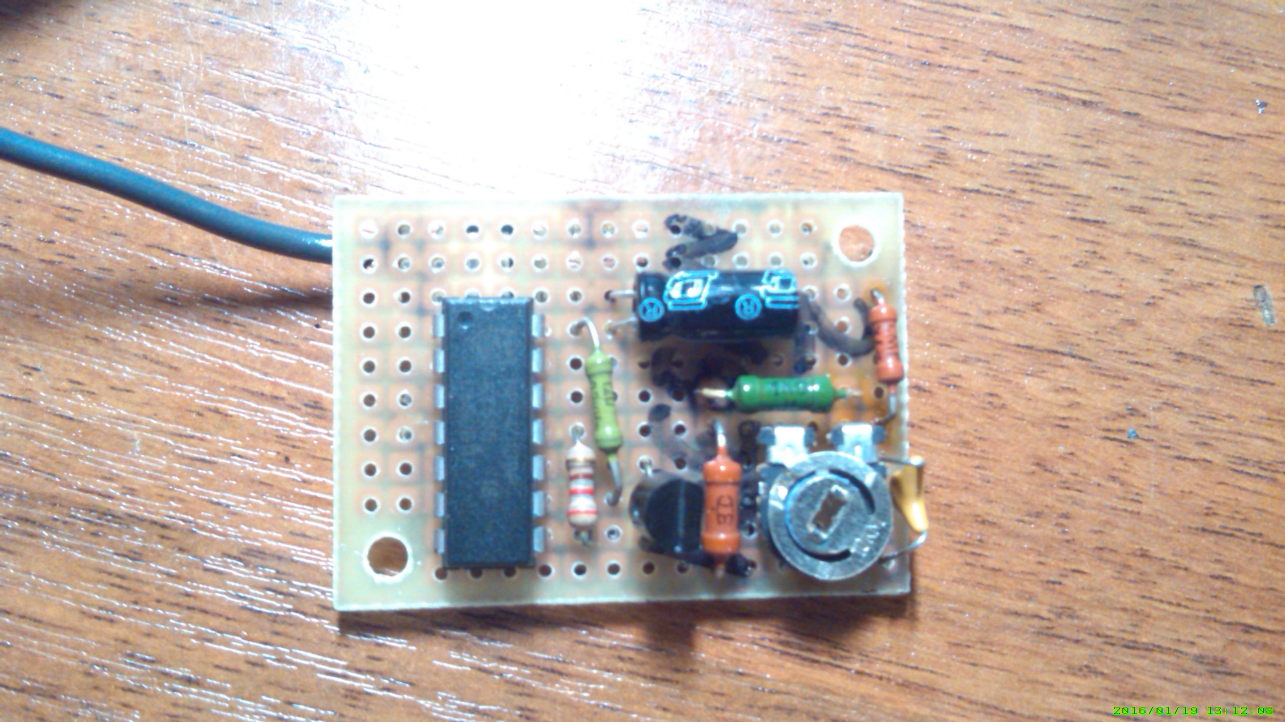 собрал на макетной плате, добавил пару стабилизаторов на 5в и на 9в, 5в поставил потому что так удобнее и меньше нагрузка на стабилизатор тахометра, а 9в поставил потому что я не использую аккумулятор, вместо него стоит электролит на 4700мкф и напряжение может возрасти более 20в, т.е. 9в стабилизатор как промежуточный, этого можно и не делать но так надёжней.